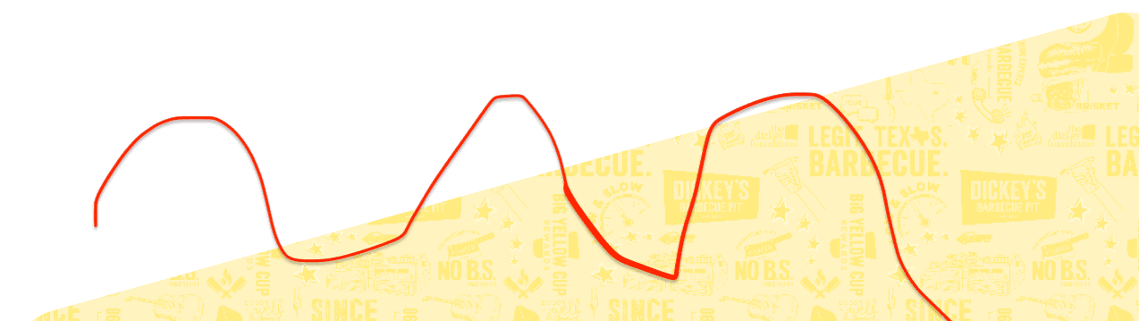 You’ll earn 10 points for each dollar spent at Dickey’s Barbecue Pit locations. Points add up to rewards for awesome stuff, like FREE pit-smoked barbecue, signature sides, and Big Yellow Cups! Sign up or download the Dickey’s app today to start racking up the points!